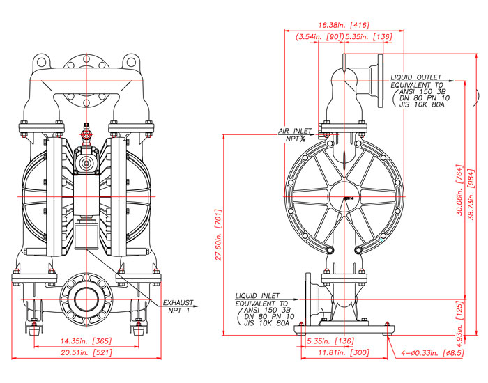 As bombas Yamada® NDP-80 series Aodd fornecem uma vazão máxima de 215 galões por minuto. As bombas estão disponíveis em alumínio, aço inoxidável (316), Kynar® (PVDF), acetal moído e construção em polipropileno.